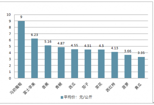 2019年4月20日-4月26日期間,國內(nèi)農(nóng)產(chǎn)品綜合類平均價(jià)格前十排名分別是馬奶葡萄 、富士蘋果 、香蕉 、青椒 、西瓜 、茄子 、菜花 、西紅柿 、菠蘿 、黃瓜 。其中,馬奶葡萄以9元/公斤位居榜首。