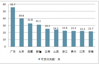 全國總體的企業(yè)養(yǎng)老保險(xiǎn)基金可支付月數(shù)TOP10