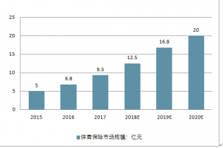 2016-2020年體育保險市場規(guī)模預測(億元)