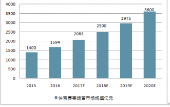 2015年-2020年體育賽事運(yùn)營(yíng)市場(chǎng)規(guī)模預(yù)測(cè)(單位:億元)
