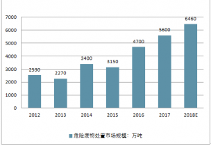 2012-2019年中國危險廢物處置市場規(guī)模走勢