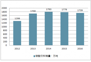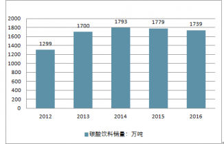 2013-2016年中國碳酸飲料銷量情況