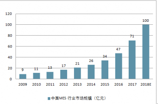2009-2018 年中國MES 行業(yè)市場規(guī)模(單位:億元)
