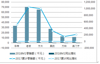 燃氣灶各品牌2019年1月和2019年累計的銷售金額及增速(千元、%)