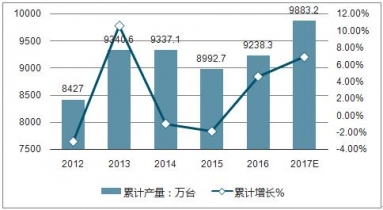 近幾年來中國電冰箱產量基本保持在9000萬臺左右。2016年中國電冰箱累計產量達到了9238.3萬臺,與2015年相比增長4.6%,預計2019年中國電冰箱累計產量將達9883.2萬臺,同比增長約6.9%。