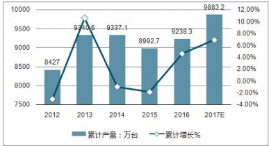 近幾年來中國電冰箱產(chǎn)量基本保持在9000萬臺左右。2016年中國電冰箱累計產(chǎn)量達(dá)到了9238.3萬臺,與2015年相比增長4.6%,預(yù)計2019年中國電冰箱累計產(chǎn)量將達(dá)9883.2萬臺,同比增長約6.9%。
