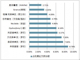 2019年全球腫瘤藥銷售額TOP10市場份額