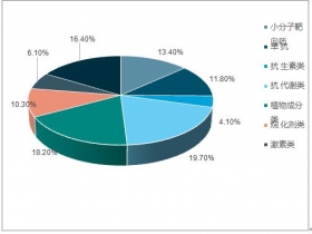 2016年重點城市醫院抗腫瘤藥物產品結構(單位:%)