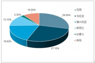 中國對牛肉進口無配額限制,但對進口國家資質(zhì)有較高要求。目前我國僅從特定國家進口凍肉、鮮肉及牛雜等制品,主要貿(mào)易國為澳大利亞、烏拉圭、新西蘭。