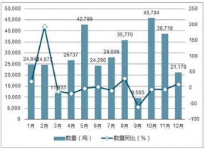 2016年中國煙花、爆竹出口數(shù)量為334,265噸,同比增長0%;2016年中國煙花、爆竹出口金額為846,763千美元,同比下降0.3%。