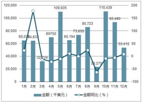 2016年中國煙花、爆竹出口數(shù)量為334,265噸,同比增長0%;2016年中國煙花、爆竹出口金額為846,763千美元,同比下降0.3%。