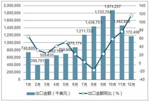 2019年1-12月中國游戲機及零附件出口金額為12800082千美元,同比增長32%。