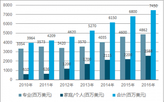 2010-2016年全球服務機器人銷售金額統(tǒng)計