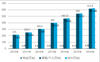 2010-2016年全球服務機器人銷量統(tǒng)計