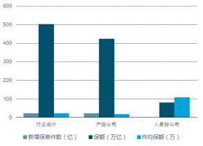 2019年1 月保監(jiān)會開始公布風(fēng)險保障金額與新增保單件數(shù)。2018 年1 月,保險行業(yè)提供風(fēng)險保障金額504.01 萬億元,新增保單件數(shù)22.64 億件,其中產(chǎn)險公司保額423.93 萬億,21.91 億件保單,件均保額19.35 萬;人身險公司累計(jì)新增保額80.08 萬億,0.73億件保單,件均保額109.7 萬。從險種來看,壽險保單件均保額在16.47 萬,健康險件均保額在27.53 萬,意外險件均保額在86.05 萬,考慮到短期醫(yī)療險等險種的因素,人身險公司售賣的重疾險保額或更高。