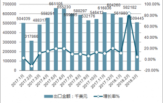 2017-2018Q1中國摩托車出口金額及增長走勢