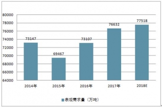 2014-2019年中國鋼材行業(yè)表觀需求量