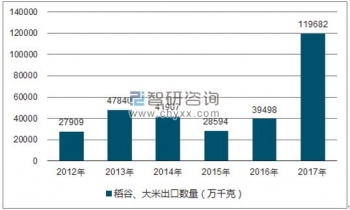 2012-2019年我國稻谷、大米出口數(shù)量統(tǒng)計(jì)圖