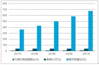 2017-2021年中國萬美元購房套數、客單價及高端家具市場需求規模測算