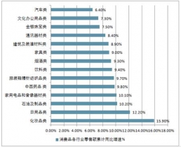 2018 年 4 月消費(fèi)品各行業(yè)零售額累計(jì)同比增速(%)