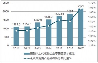 中國(guó)化妝品行業(yè)進(jìn)入新階段。 中國(guó)現(xiàn)代化妝品行業(yè)發(fā)展始于 20 世紀(jì) 20年代, 大致經(jīng)過了小作坊起步、工業(yè)化生產(chǎn)、海外品牌收購(gòu)、國(guó)產(chǎn)品牌涌現(xiàn)四個(gè)階段。 目前行業(yè)已進(jìn)入新的發(fā)展階段,一方面, 行業(yè)各細(xì)分市場(chǎng)品類逐漸完善,銷售規(guī)模屢創(chuàng)新高;另一方面, 行業(yè)整合開啟,資本并購(gòu)活躍。化妝品消費(fèi)顯著回暖,領(lǐng)跑其他消費(fèi)品類。 (1) 從限額以上消費(fèi)品各行業(yè)來看, 2018 年 4 月份化妝品類零售額累計(jì)同比增速達(dá)到 15.90%,增速最高,領(lǐng)跑其他消費(fèi)品類; (2) 2017 年限額以上化妝品行業(yè)全年零售額達(dá)到 2171 億元,同比增長(zhǎng) 16.66%, 增速為 2013 年以來新高,高于同期消費(fèi)品社零增速(+7.56%);(3) 化妝品消費(fèi)占社銷零售總額比重持續(xù)提升,2017 年占比達(dá)到 1.64%(+0.13pcts);(4) 從整體零售口徑統(tǒng)計(jì)來看,2016 年中國(guó)化妝品零售整體交易規(guī)模達(dá)到了 5830 億元,增長(zhǎng)率達(dá)到 20.4%,預(yù)計(jì)到 2019年,這一規(guī)模將超過 8000 億元。