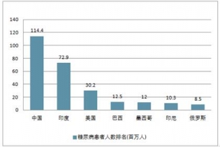 2017 年糖尿病患者人數(shù)排名(百萬人)