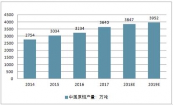 2014-2019年中國(guó)原鋁產(chǎn)量走勢(shì)