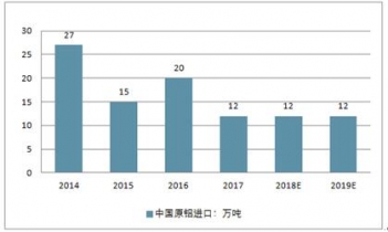 2014-2019年中國(guó)原鋁進(jìn)口量走勢(shì)