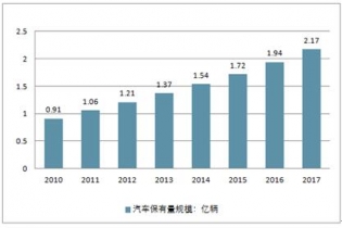 2010-2019年中國汽車保有量規(guī)模走勢