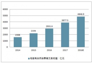 近幾年,中國母嬰商品網絡零售交易規(guī)模不斷擴大,2014年母嬰商品網絡零售額僅1568億元,2015年突破2000億,達到2194億元,2016年逼近3000億元,達到2931.6億元。2019年進一步增長,母嬰商品網絡零售總額387.5億元,同比增長32.3%。近幾年,中國母嬰商品網絡零售額增速呈現下降的趨勢。預計2019年市場規(guī)模將達到4846.9億元。