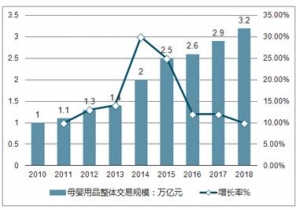 2010-2019年中國(guó)母嬰用品交易規(guī)模及增長(zhǎng)率