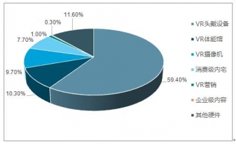 2016年中國(guó)虛擬現(xiàn)實(shí)(VR)市場(chǎng)各細(xì)分市場(chǎng)占比情況