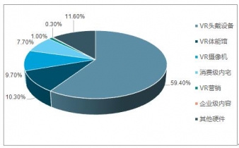 2016年中國(guó)虛擬現(xiàn)實(shí)(VR)市場(chǎng)各細(xì)分市場(chǎng)占比情況