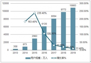 2013年-2019年中國網(wǎng)絡(luò)視頻用戶付費規(guī)模