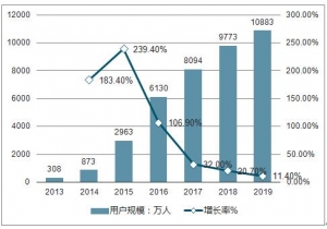 2013年-2019年中國網(wǎng)絡(luò)視頻用戶付費(fèi)規(guī)模
