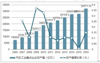 2006年-2016 年我國汽車工業(yè)重點(diǎn)企業(yè)總產(chǎn)值變化情況