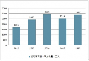 2015年通過機動車駕駛執(zhí)照考試人數(shù)為2528萬人, 2012-2015年復合增長率約14.03%。2016年機動車駕駛培訓人均消費5000元, 對應2016年機動車駕駛培訓市場空間1442億元。