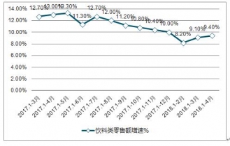 2019年4月份飲料類零售總額達153億元,與去年同期增長10.4%。2019年1-4月中國飲料類零售總額達636億元,與去年同期增長9.4%