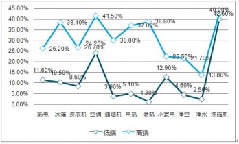 2019年1-10月低端V.S高端家電產(chǎn)品零售額滲透率