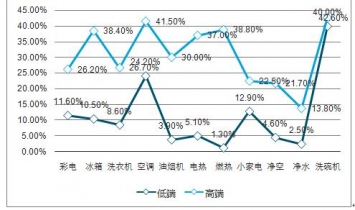 2019年1-10月低端V.S高端家電產(chǎn)品零售額滲透率