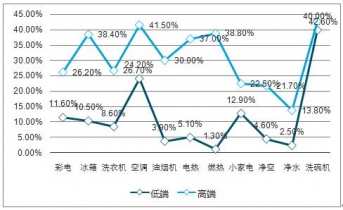 2019年1-10月低端V.S高端家電產(chǎn)品零售額滲透率