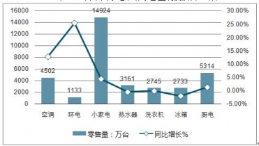 2019年1-10月中國家電市場零售量規(guī)模及同比增長