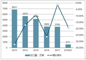 2013-2018 Q1年中國照相機出口量及增長走勢