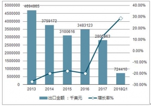 2013-2018Q1年中國照相機出口金額及增長走勢