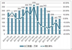 2017-2018Q1年中國照相機(jī)出口量及增長走勢