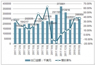 2017-2018Q1年中國照相機(jī)出口金額及增長走勢