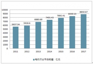 2019年我國(guó)電機(jī)行業(yè)市場(chǎng)規(guī)模約8850.67億元,同比2016年的8330.13億元增長(zhǎng)了6.25%,