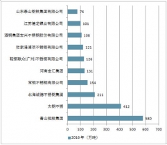 2016 年國內(nèi)前 10 家不銹鋼生產(chǎn)企業(yè)的粗鋼產(chǎn)量