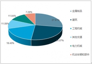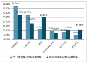 2016年金屬制品、建筑和工程機械是不銹鋼的主要下游,占比分別達到27.61%、 24.57%和18.40%