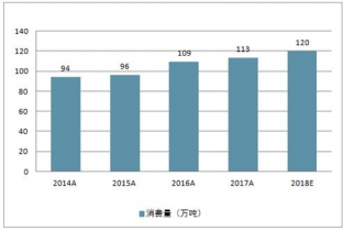2014-2019年中國(guó)鎳消費(fèi)量走勢(shì)